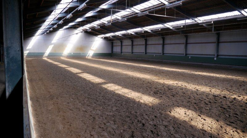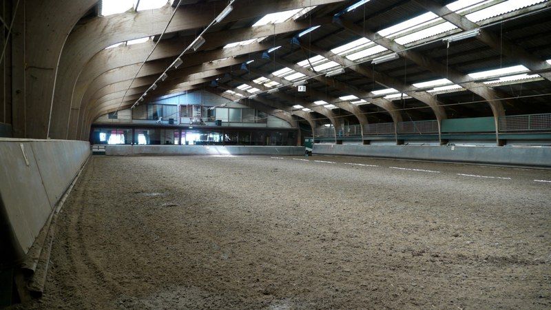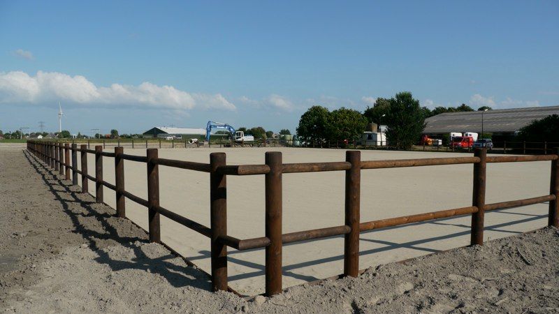 Dit is de mooie en grote buitenbak van de manege. De bak heeft een eb en vloed bodem, in de zomer word de bak met pionnen door de helft gedeeld en worden er lessen gegeven.