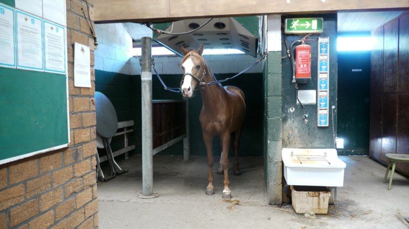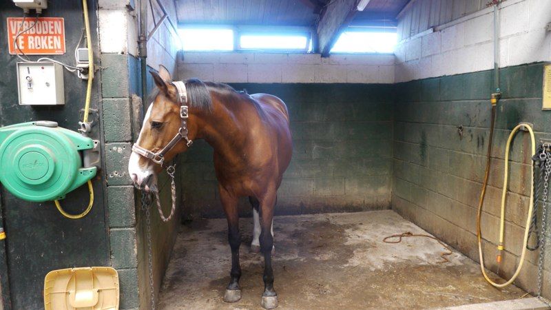 Dit is de poetsplaats, je kunt hier je paard poetsen en wassen met warm of koud water.
